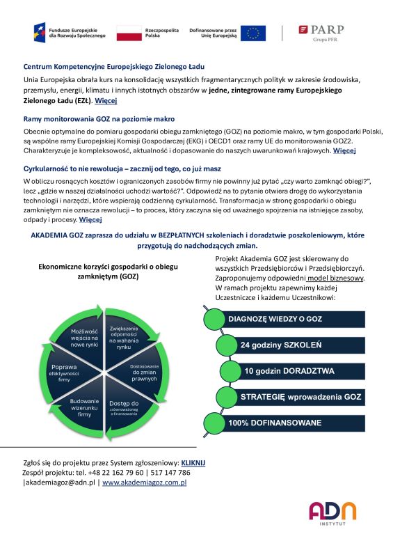 Akademia GOZ zachęca do udziału w projekcie, który jest realizowany przez Krajową Izbę Gospodarczą oraz Instytut ADN sp. z o.o. sp. k. Numer projektu: FERS.01.03-IP.09-0086/23.