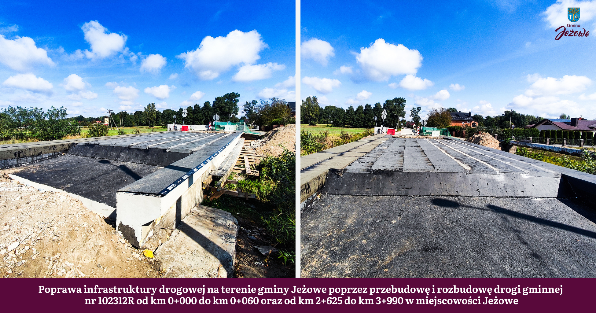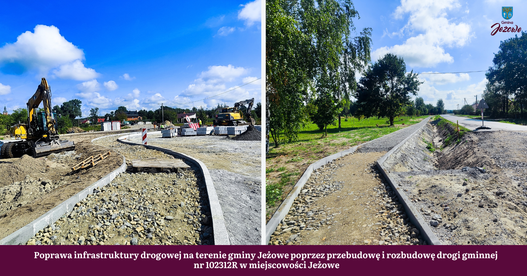 - Przebudowa i rozbudowa drogi gminnej nr 102312R w miejscowości Jeżowe.