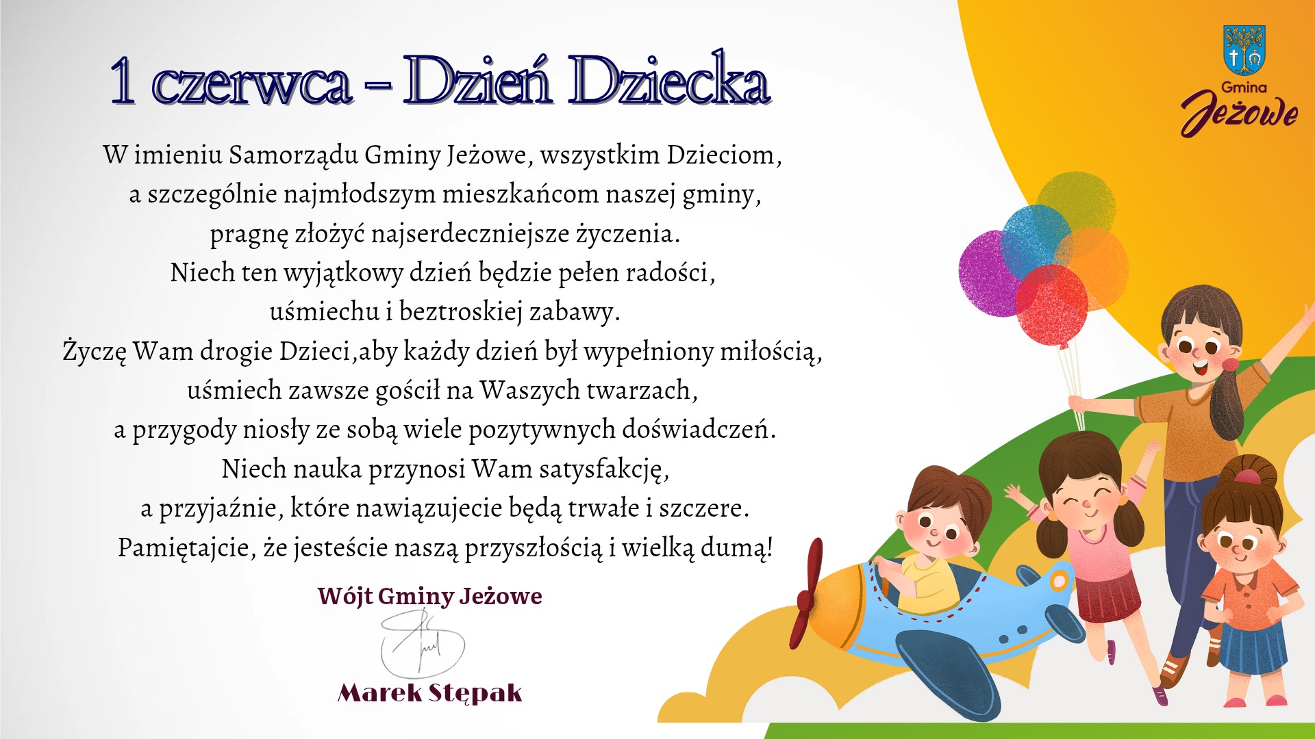 W imieniu Samorządu Gminy Jeżowe, wszystkim Dzieciom, a szczególnie najmłodszym mieszkańcom naszej gminy, pragnę złożyć najserdeczniejsze życzenia!