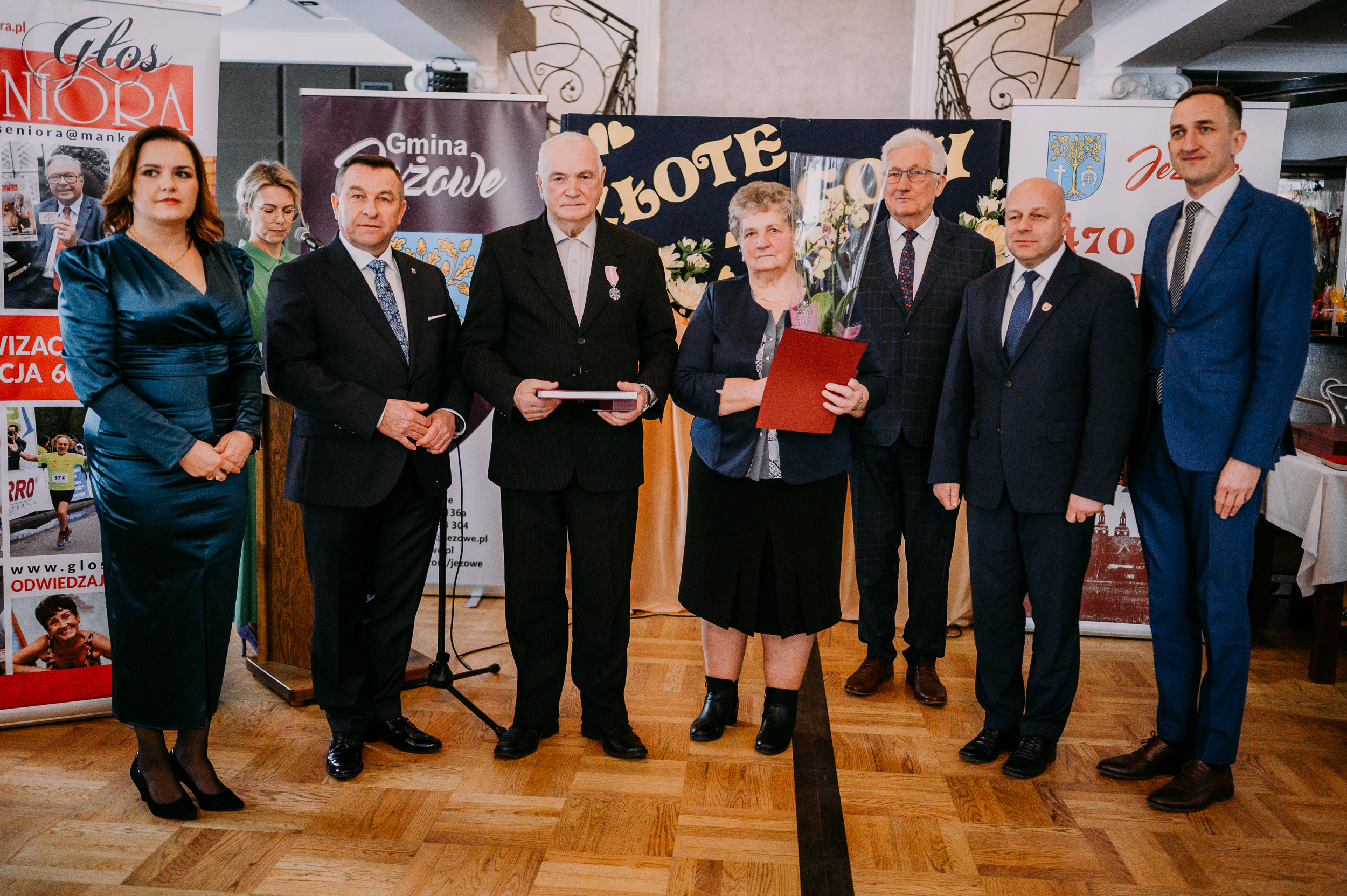 Następnie Jubilaci, z rąk Wójta Gminy Jeżowe Marka Stępaka, Przewodniczącego Rady Gminy Jeżowe Mariana Koca, Starosty Powiatu Niżańskiego Roberta Bednarza, Zastępcy Wójta Gminy Jeżowe Michała Wasyliszyna oraz Kierownik Ośrodka Pomocy Społecznej Małgorzaty Bolka otrzymali kwiaty, legitymacje i ordery przyznane przez Prezydenta RP Andrzeja Dudę za długoletnie pożycie małżeńskie. Radość obecna na twarzach Jubilatów była niewątpliwie niesamowita, ale jeszcze bardziej poruszające było doświadczenie wspólnoty, jakie odzwierciedlało się w ich otoczeniu.