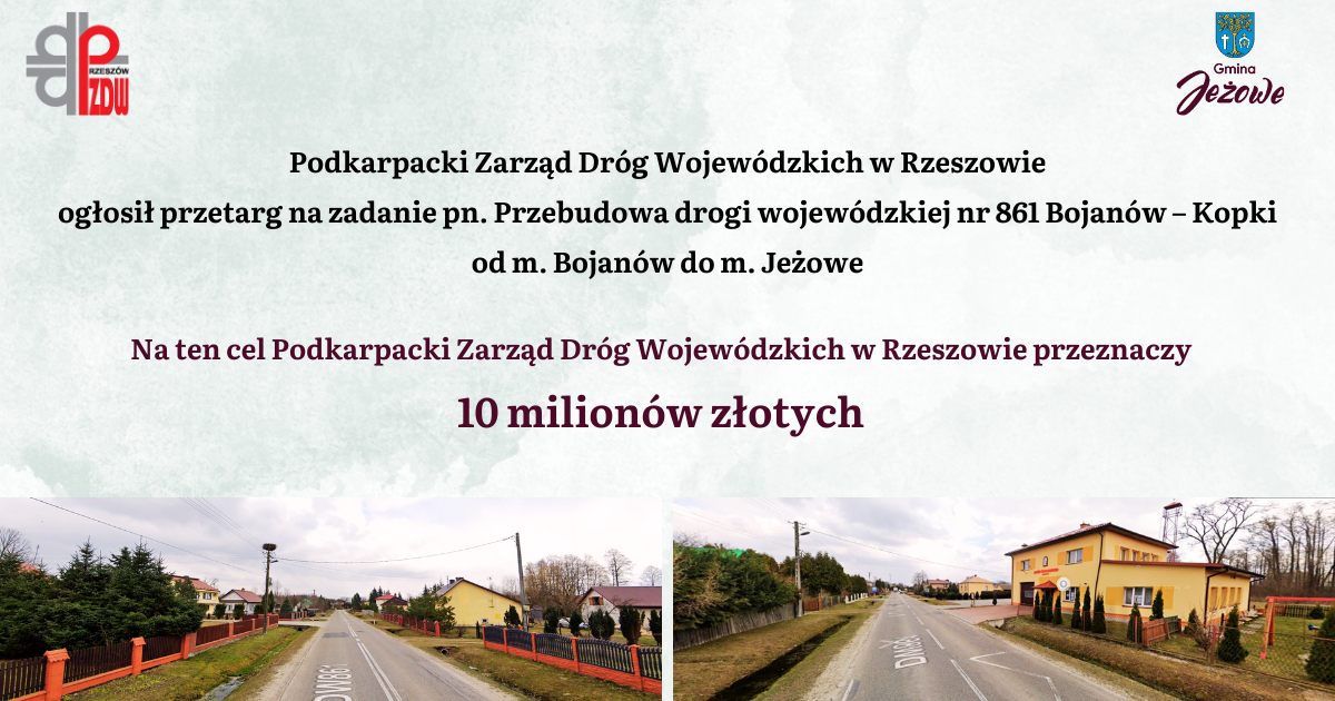 Ogłoszenie przetargu na przebudowę drogi wojewódzkiej nr 861 Bojanów-Kopki jest konkretną odpowiedzią na wczorajszą obietnicę i wyrazem zaangażowania Samorządu w poprawę infrastruktury drogowej w gminie Jeżowe.