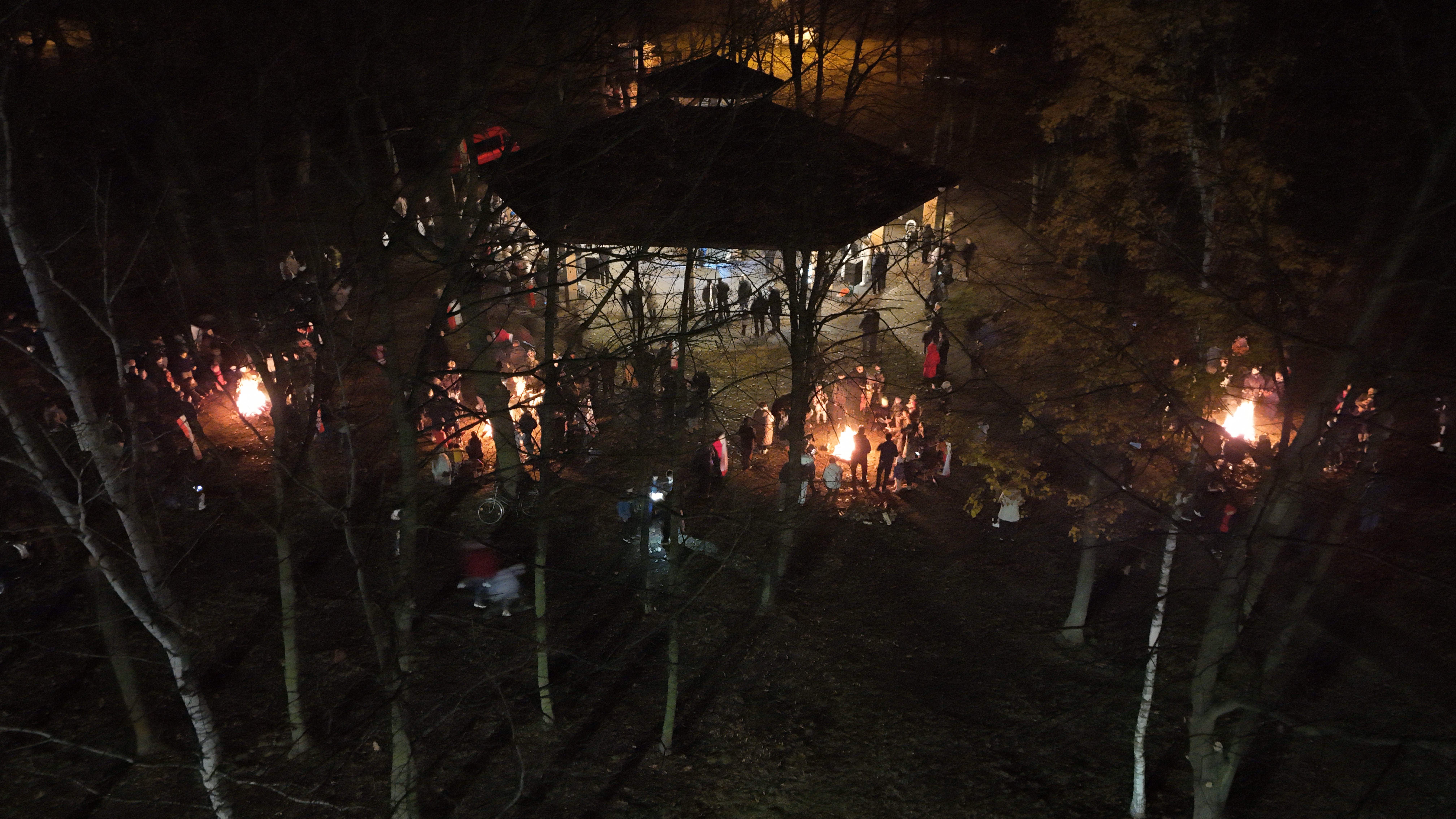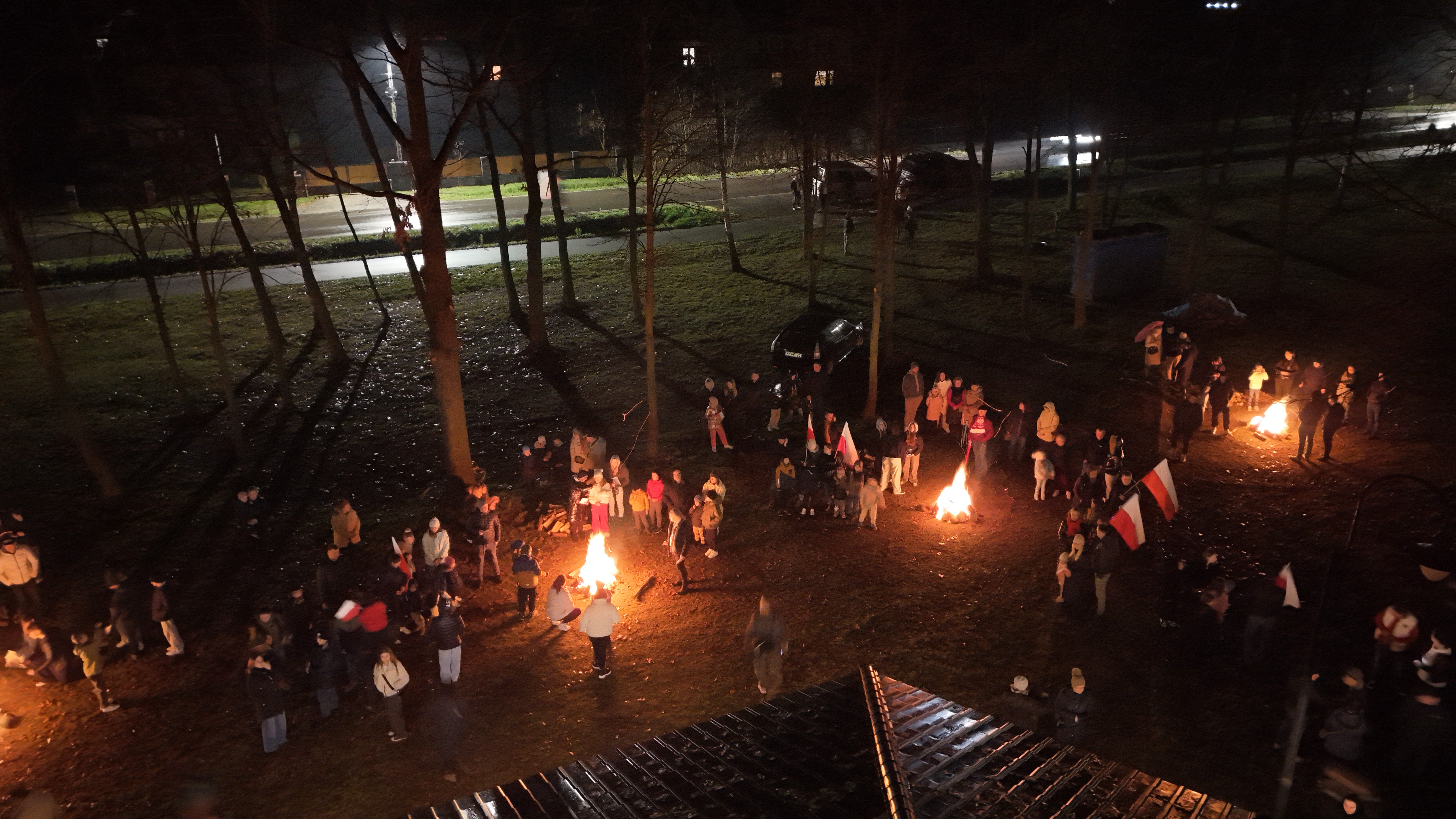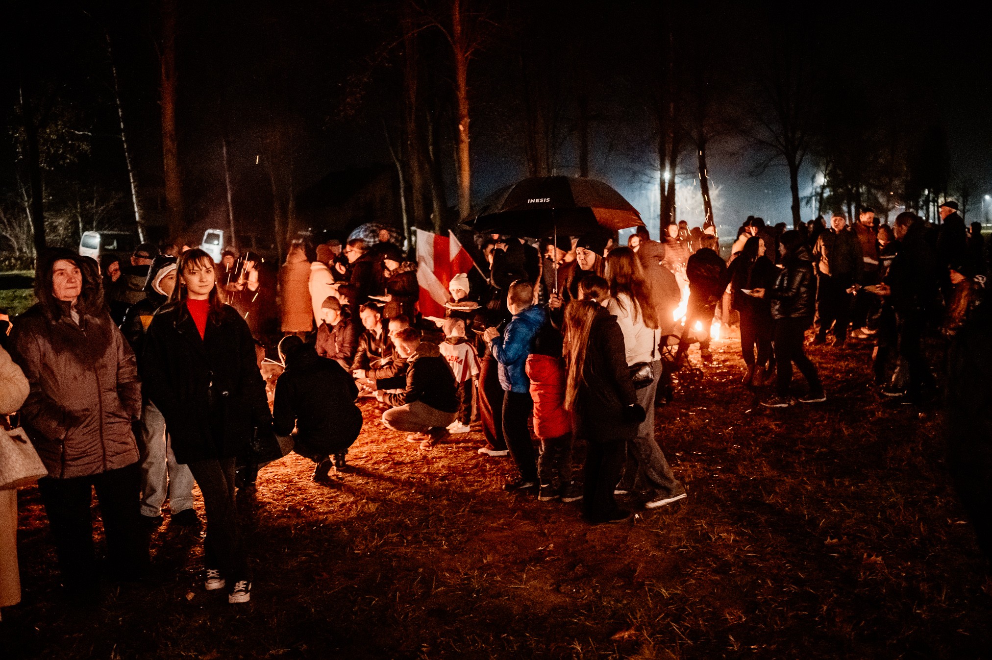 Wieczorem w Parku Gminnym rozpalono Ogniska Niepodległości .