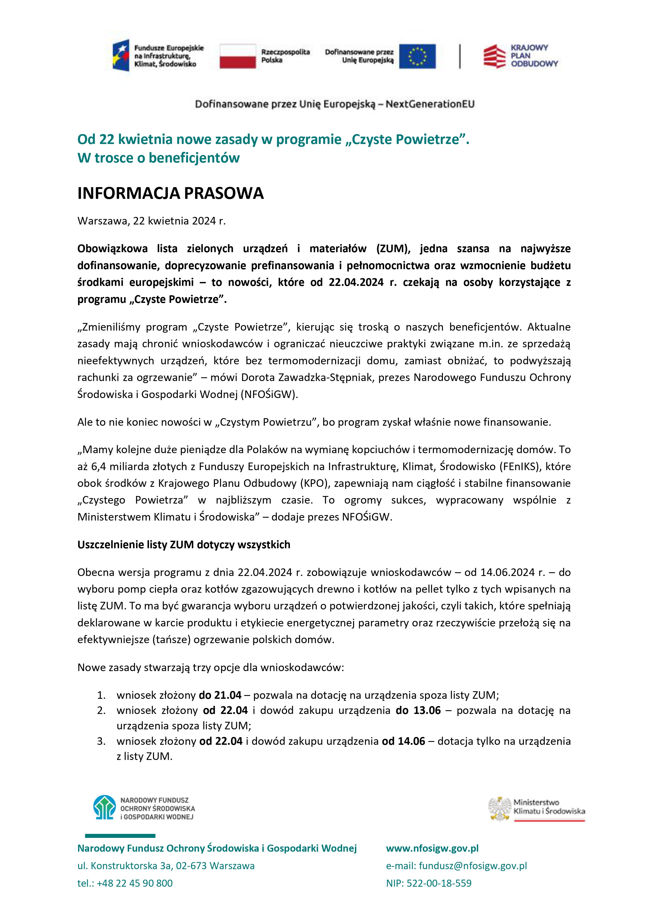OD 22 kwietnia zmiany w programie priorytetowym "Czyste Powietrze"!