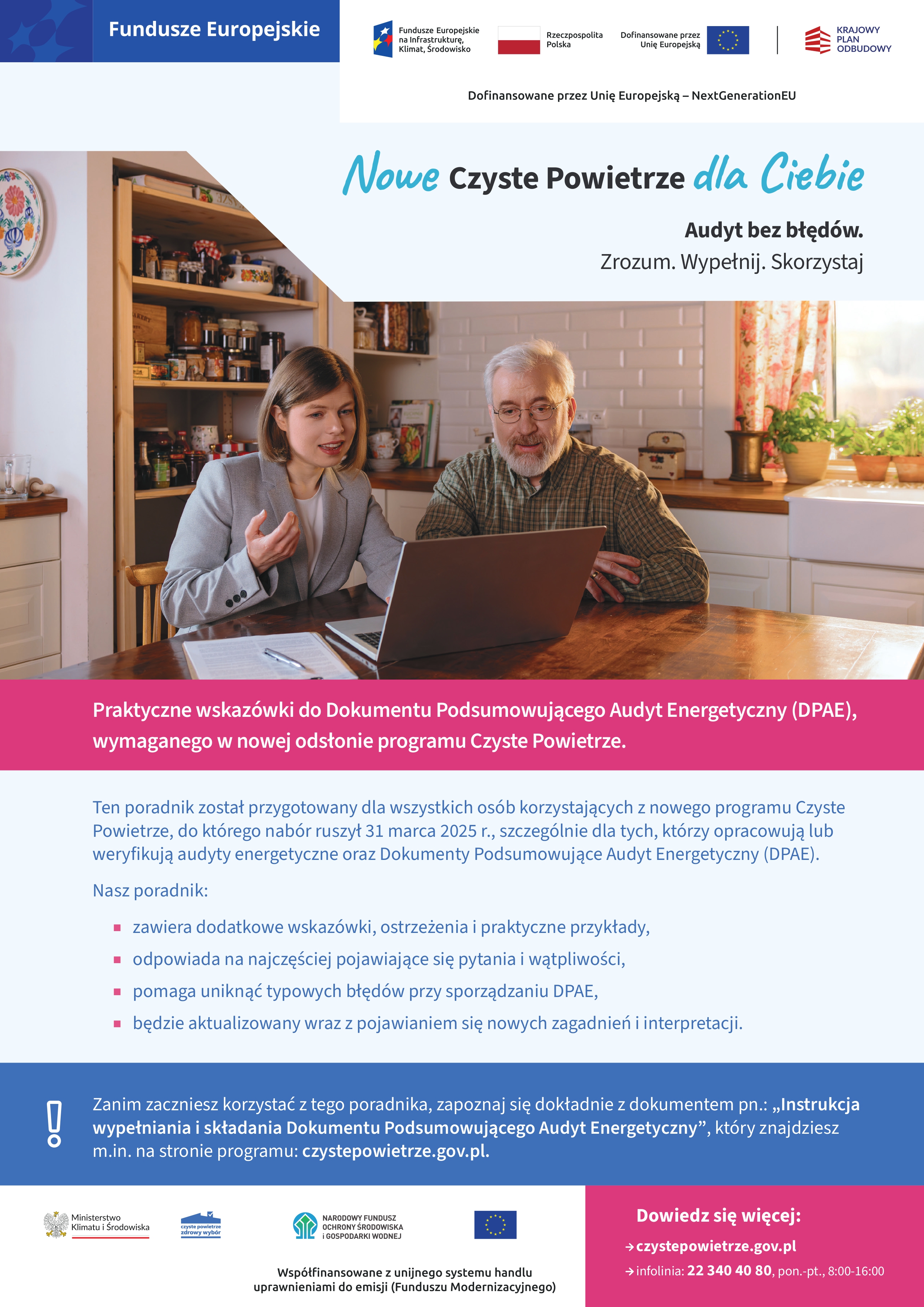 Poradnik Audyt Bez Błędów, w którym znajdziesz praktyczne wskazówki do Dokumentu Podsumowującego Audyt Energetyczny (DPAE), wymaganego w nowej odsłonie programu Czyste Powietrze.