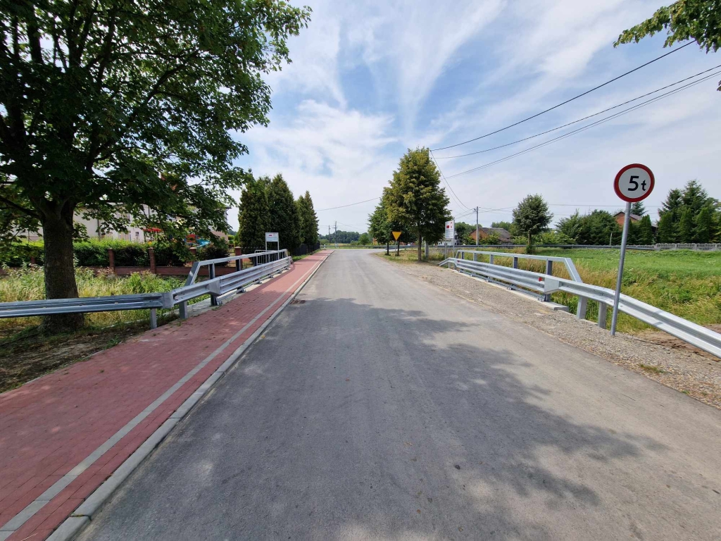 Zakres prac obejmował przebudowę 999 m.b. drogi, istniejących przejść dla pieszych, wykonanie poboczy oraz modernizację istniejącego mostu.
