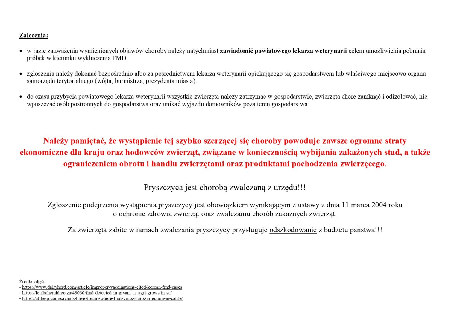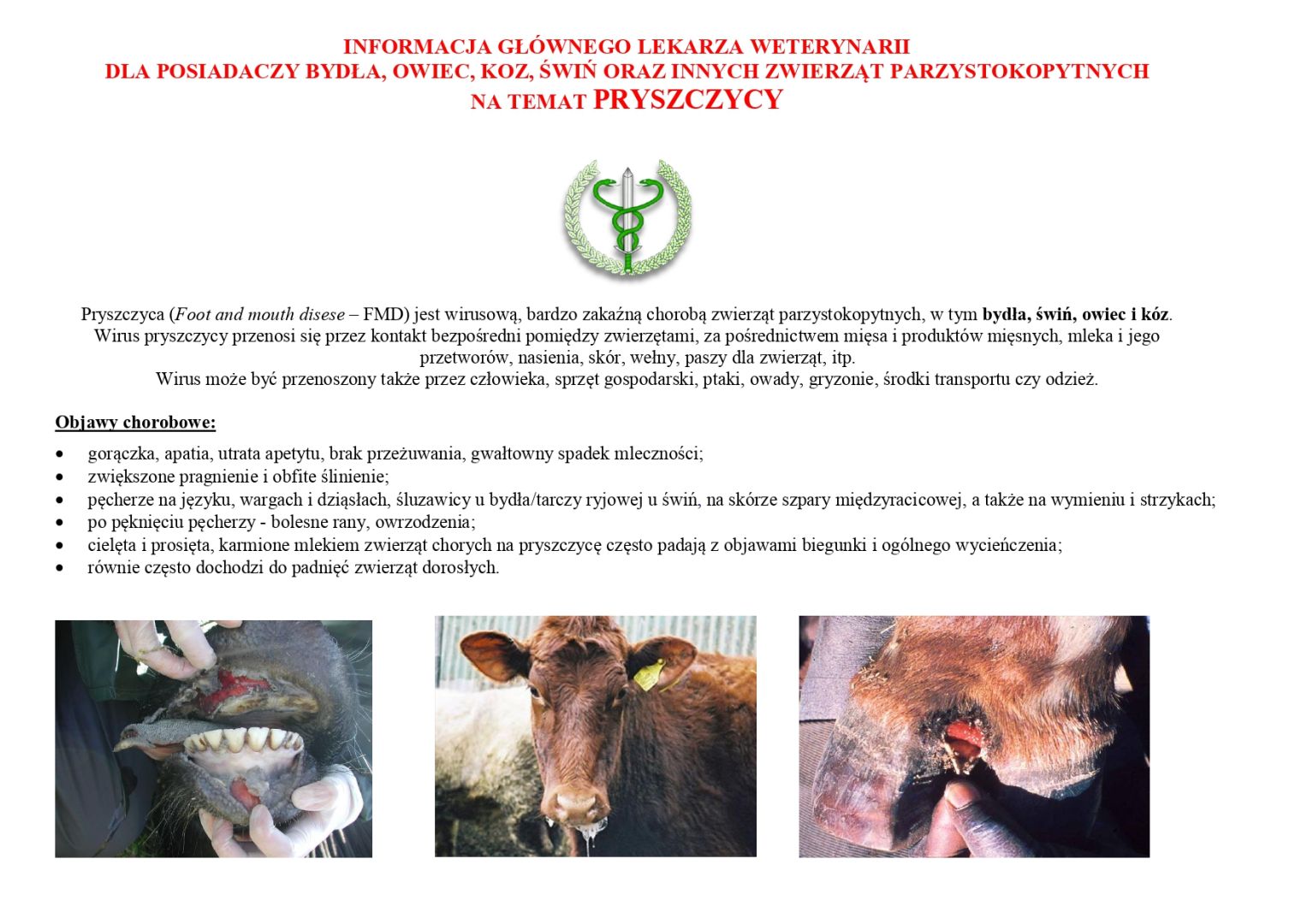 Informacja Głównego Lekarza Weterynarii dla posiadaczy bydła, owiec, kóz, świń oraz innych zwierząt parzystokopytnych na temat pryszczycy