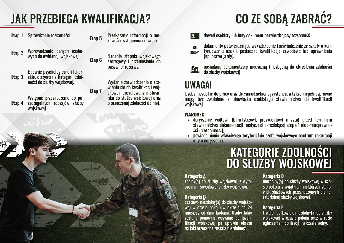 Od dnia 9 lutego 2026 do dnia 2 marca 2026 roku na terenie powiatu niżańskiego zostanie przeprowadzona kwalifikacja wojskowa, która ma na celu weryfikację stawiających do niej osób pod kątem ich predyspozycji i stanu zdrowia psychofizycznego dla potrzeb służby wojskowej.