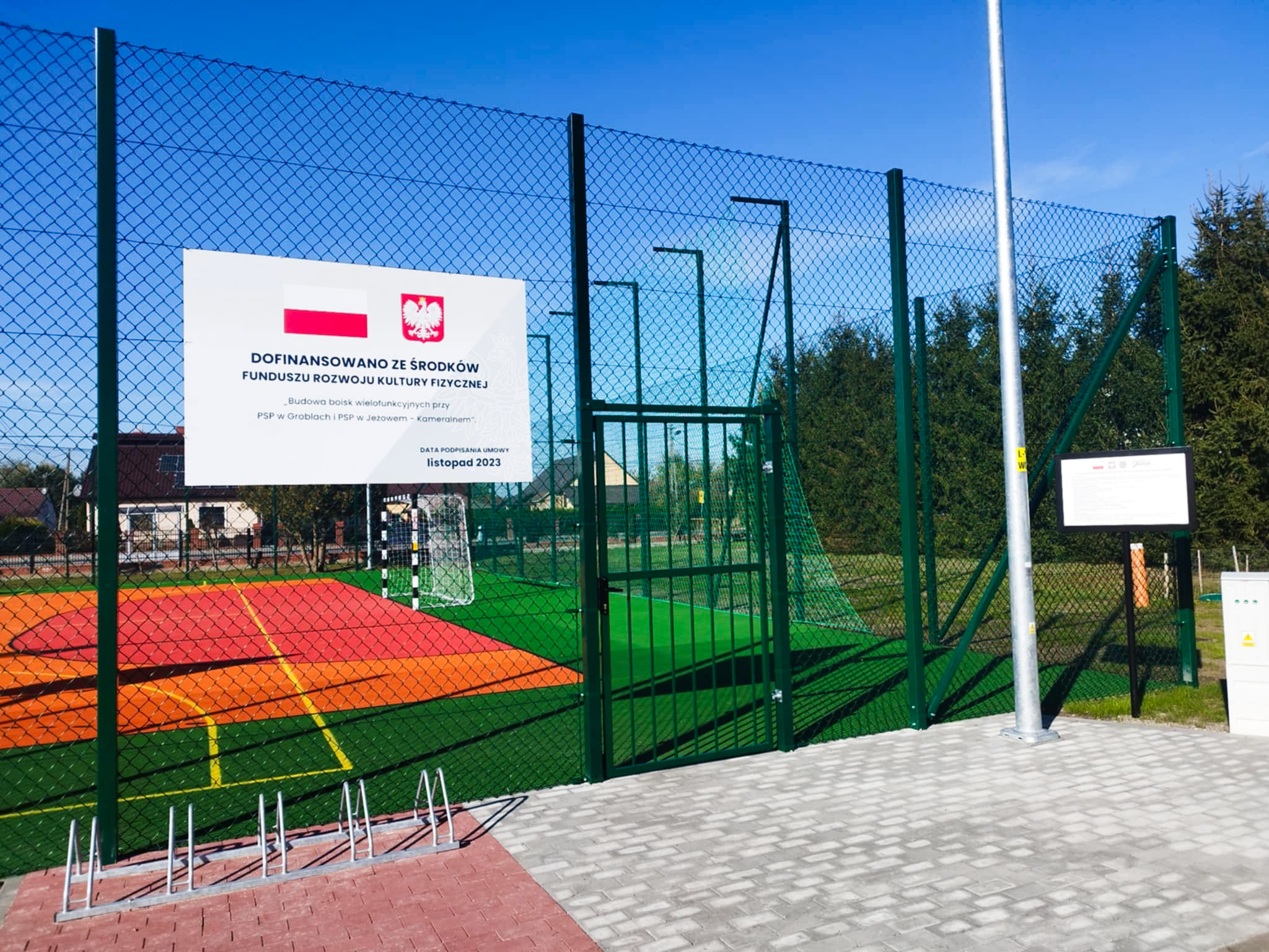 W ramach realizowanej inwestycji na terenie Publicznej Szkoły Podstawowej w Jeżowem Kameralnem oraz Publicznej Szkoły Podstawowej w Groblach powstały 𝐰𝐢𝐞𝐥𝐨𝐟𝐮𝐧𝐤𝐜𝐲𝐣𝐧𝐞 𝐛𝐨𝐢𝐬𝐤𝐚 𝐬𝐩𝐨𝐫𝐭𝐨𝐰𝐞 z nawierzchnią poliuretanową. Obiekty przeznaczone są do gry w piłkę ręczną, siatkówkę, koszykówkę oraz tenis ziemny. Wokół pól do gry zaprojektowano także strefę bezpieczeństwa. Wykonawcą tego projektu była firma OBO Polska, wyłoniona w drodze przetargu.