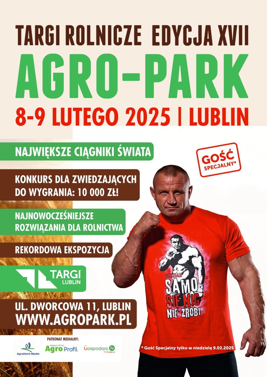 Nowością tegorocznych targów będzie specjalnie wydzielona strefa, w której zobaczymy największe i najmocniejsze ciągniki na świecie. W niedzielę 9 lutego gościem specjalnym na Strefie najmocniejszych ciągników będzie najsilniejszy człowiek świata-Mariusz Pudzianowski, który oprócz tego , że jest wybitnym zawodnikiem sztuk walki to jest również sadownikiem, więc zna branżę rolniczą od podszewki. Poza wielkimi i mocnymi ciągnikami na hali C będzie można również zobaczyć na placu przed halami bardzo rzadko prezentowane na targach rolniczych kombajny do buraków, ziemniaków i zboża. Targi AGRO-PARK w Lublinie to przede wszystkim długa historia, którą tworzymy wspólnie z naszymi wystawcami, zwiedzającymi. Przez ostatnie lata staraliśmy się sprostać rosnącym wymaganiom branży rolniczej, dlatego ogromnie cieszy nas fakt, że po raz kolejny uda nam się zorganizować targi na bardzo wysokim, rekordowym poziomie. Targi Agro-Park to jedno z największych i najważniejszych wydarzeń rolniczych w naszym kraju, które co roku przyciąga coraz liczniejsze grono wystawców i zwiedzających - podkreśla Dyrektor Projektu Maciej Wituch.