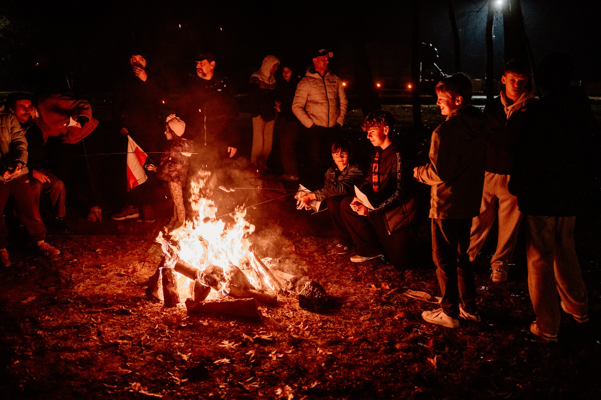 Wieczorem w Parku Gminnym rozpalono Ogniska Niepodległości .
