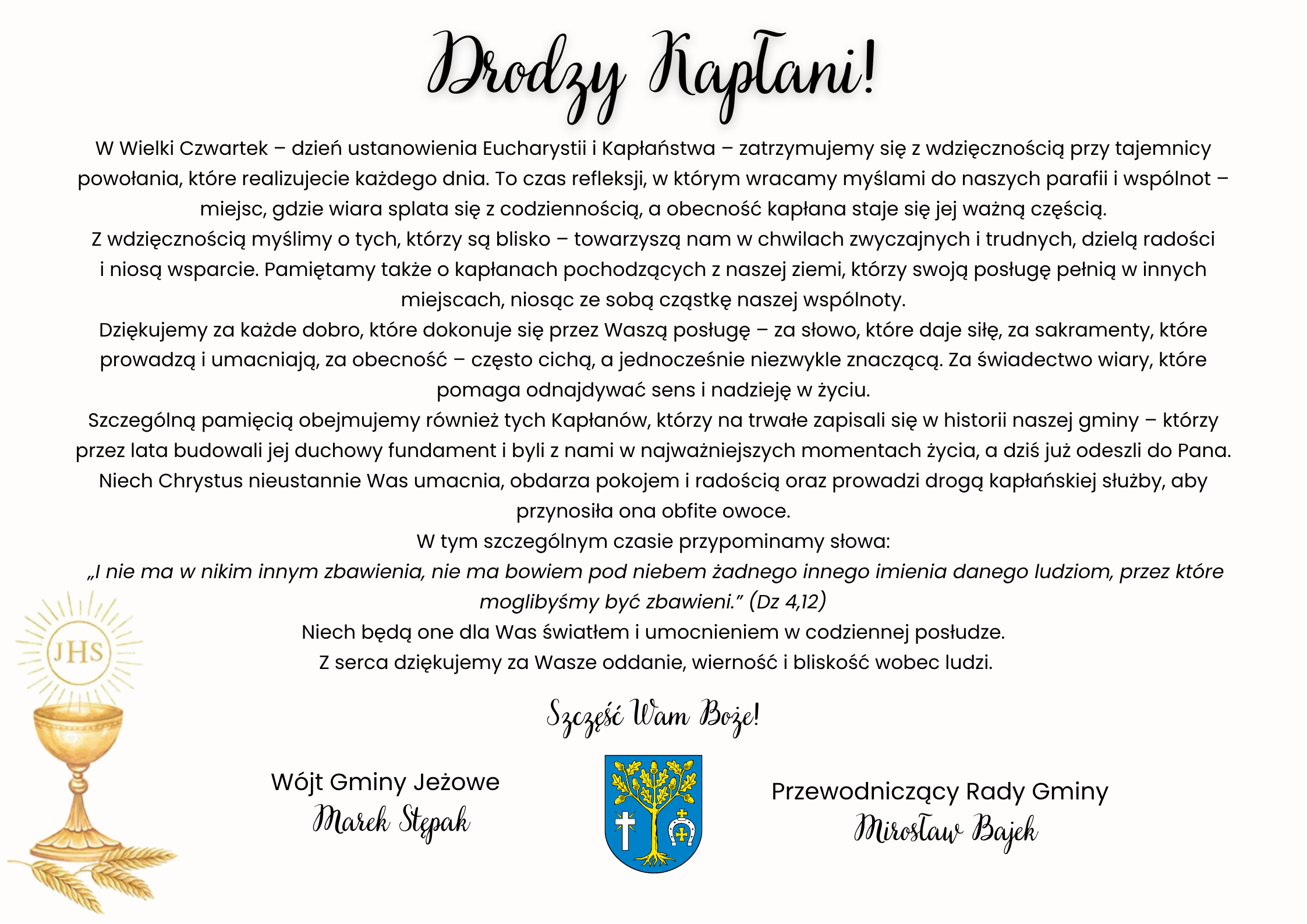 Wielki Czwartek – w dniu ustanowienia Eucharystii i Kapłaństwa składamy podziękowania Kapłanom