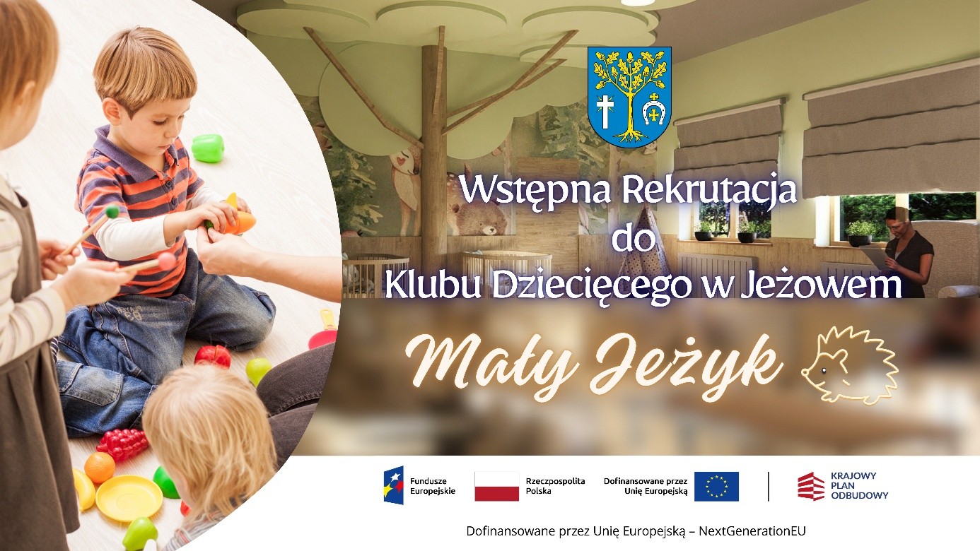 Wójt Gminy Jeżowe informuje o rozpoczynającej się wstępnej rekrutacji do nowo powstającego Klubu Dziecięcego w Jeżowem „Mały Jeżyk”. Rekrutacja przeprowadzona jest w celu poznania zainteresowania rodziców dzieci w wieku do lat 3 zapisaniem do klubu dziecięcego.