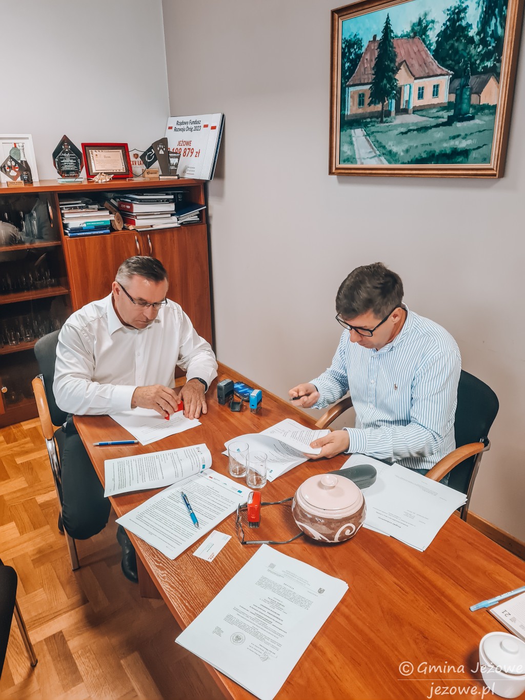 W dniu 22.08.2023 r. odbyło się podpisanie umowy z firmą Skorut Systemy Solarne Sp. z o.o. Następnie 30.08.2023 r. podpisano umowę z firmą Solartime S.A. To z nimi Gmina Jeżowe wspólnie przystąpi do realizacji założeń projektu. Firma Skorut Systemy Solarne Sp. z o.o. zostanie wykonawcą instalacji solarnych i pomp ciepła, natomiast firma Solartime S.A. zajmie się montażem instalacji fotowoltaicznych.