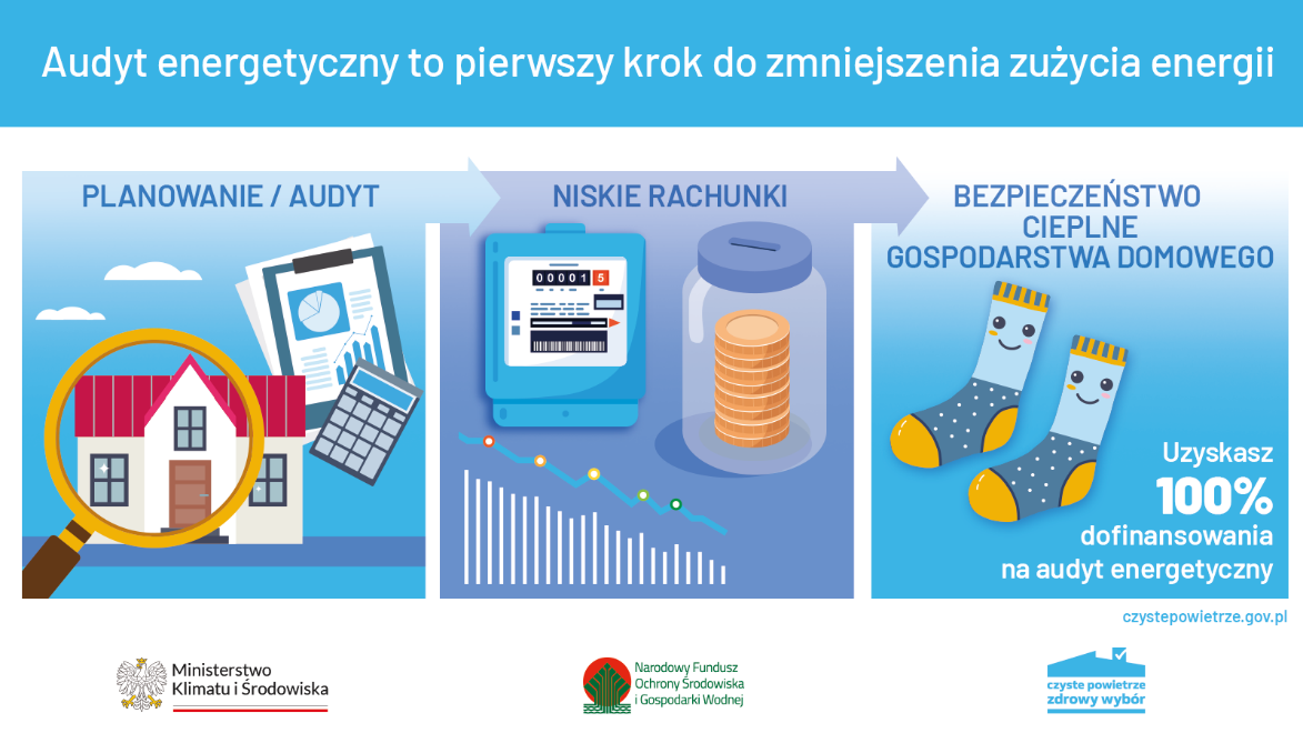 Zanim przystąpisz do programu, warto jest wykonać audyt energetyczny, to dokument opracowany przez specjalistę, który pokazuje co w domu należy docieplić, zainstalować i wymienić w ramach termomodernizacji, aby była ona kompleksowa. Taka kompleksowa termomodernizacja umożliwia otrzymanie najwyższej dotacji, a później płacenie niższych rachunków.