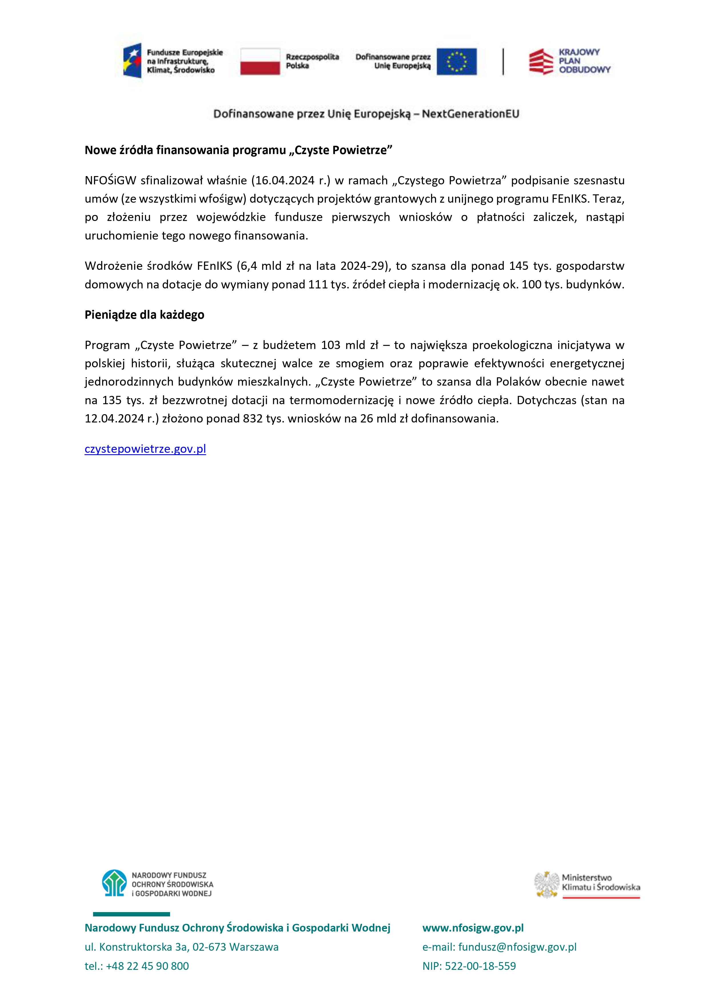 OD 22 kwietnia zmiany w programie priorytetowym "Czyste Powietrze"!