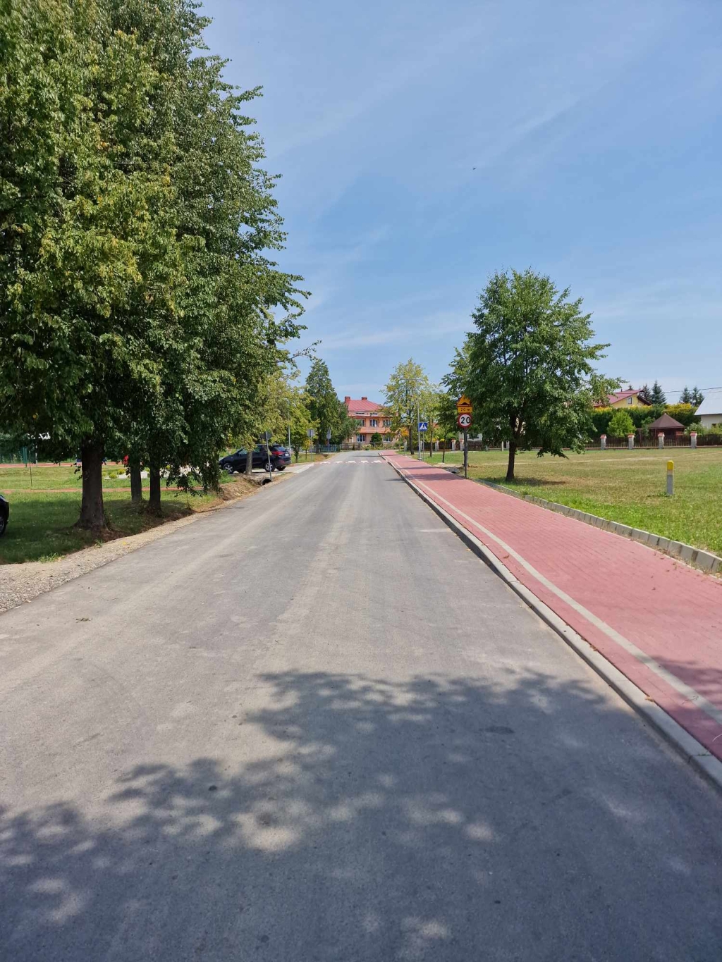 Zakres prac obejmował przebudowę 999 m.b. drogi, istniejących przejść dla pieszych, wykonanie poboczy oraz modernizację istniejącego mostu.